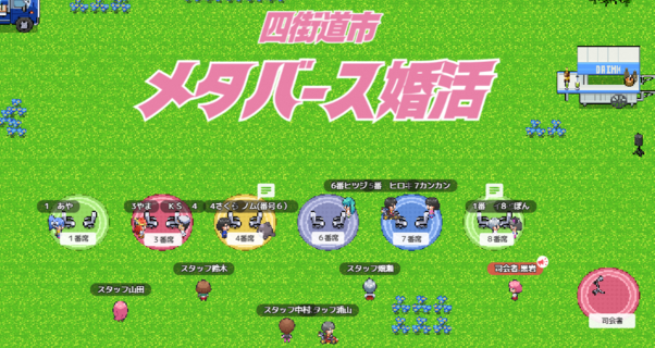 メタバース(インターネット上の仮想空間)でアバターと呼ばれる自身の分身を操作して交流する婚活イベントを開催し、男性4人・女性6人の計10人が参加したところ、3組のカップルが成立しました!