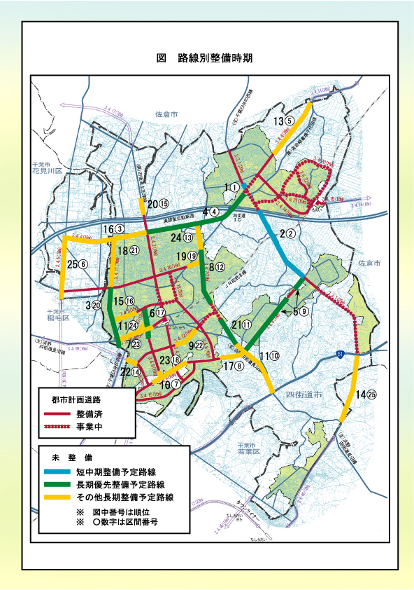 本市では、22路線、総延長にして約47キロメートルの道路を都市計画決定していますが、完成しているのは4割程度で、千葉市など隣接都市を接続する道路や、市街地間を接続する道路の整備が大変遅れています。