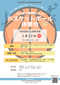 【参加者大募集】青少年体験学習事業「PR大使佐藤博紀さんのバスケットボール体験会」