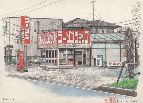 四街道市の船橋街道千葉市寄りの一角、下志津新田に、赤い看板を掲げたラーメンショップがあった。店の前に綱を張っているので、この日は休みだろう。その右隣りは千葉市小深の八幡(はちまん)神社。そこに、路線バスの標識が立っている。美味いラーメンだったので、多くのファンがいた。ご主人が高齢のため、ラーメンを調理することが困難になり、2019年に閉店した。現在、跡地は駐車場になっている。