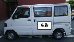 公用車の後部ドアの両面に広告を張り付けて走行します。