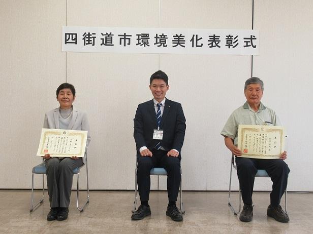 令和4年度四街道市環境美化表彰式を6月30日(木)に四街道市役所で行いました。この表彰式は市内において環境美化活動を行い、その推進に顕著な功績のあった者(団体を含む)を表彰するもので、今年度は、個人の方2名を表彰しました。