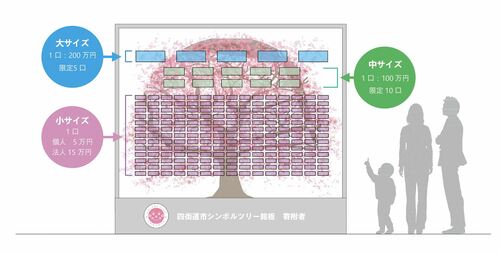 銘板小サイズ:5万円(個人)/15万円(法人又は各種団体) 200口程度